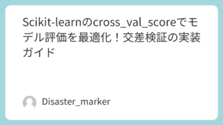 Pythonの機械学習ライブラリScikit-learnで、モデルの汎化性能を正確に評価するための関数「cross_val_score」の使い方を初心者向けに徹底解説します。ホールドアウト法の弱点から、K分割交差検証の仕組み、主要な引数(cv, scoring)の設定方法、そしてデータリークを防ぐPipeline(パイプライン)との組み合わせまで、コピペで動く具体的なコード例とともに詳しく紹介。実務で使える堅牢なモデル構築の第一歩を踏み出しましょう。