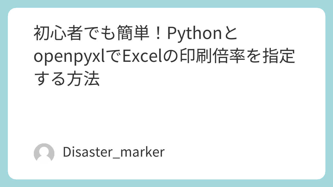 この記事では、Pythonの**openpyxl**というライブラリを使って、Excelファイルの印刷倍率(拡大・縮小率)を自動で設定する方法を、プログラミング初心者の方にも分かりやすく解説します。