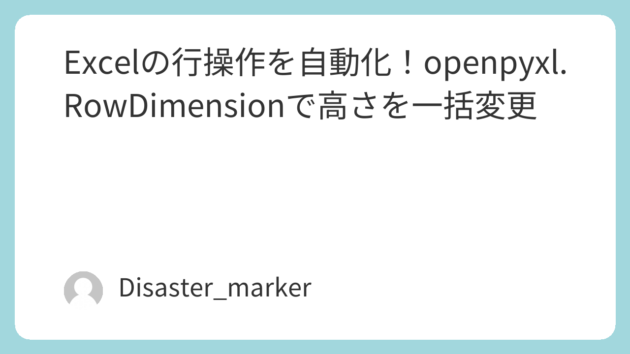 この記事では、openpyxlライブラリのRowDimensionを使い、面倒なExcelの行の高さ調整をPythonで自動化し、複数行をまとめて変更するテクニックを解説します。もう、レポート生成後に手直しする必要はありません。