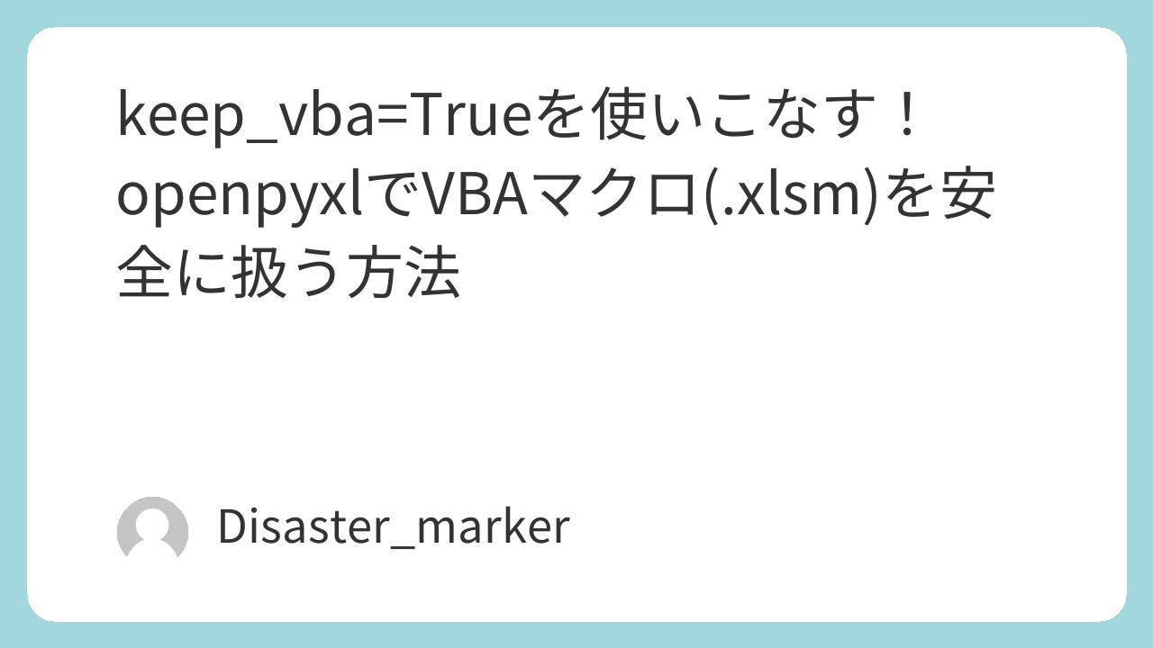 keep_vba=Trueを使いこなす!openpyxlでVBAマクロ(.xlsm)を安全に扱う方法