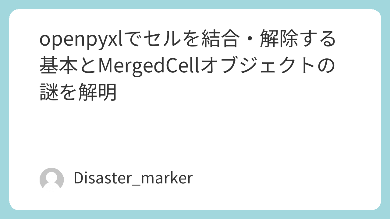 今回は、openpyxlにおけるセルの結合・解除の基本と、多くの人が混乱しがちなMergedCellオブジェクトの謎について解説しました。