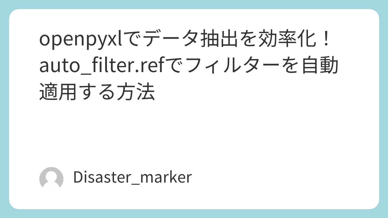 今回は、openpyxlのauto_filter.refを使って、Excelのフィルター設定を自動化する方法を解説しました。