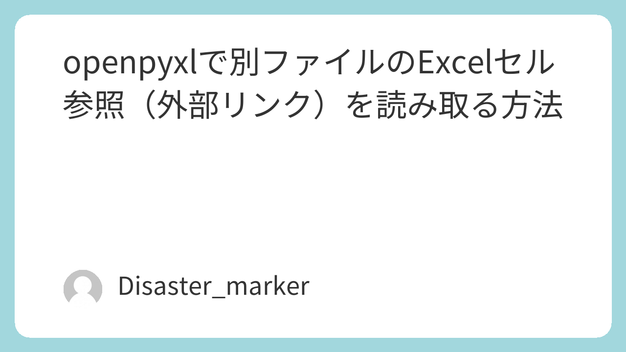 openpyxlを使って別ファイルのセル参照(外部リンク)を扱う方法をまとめます。