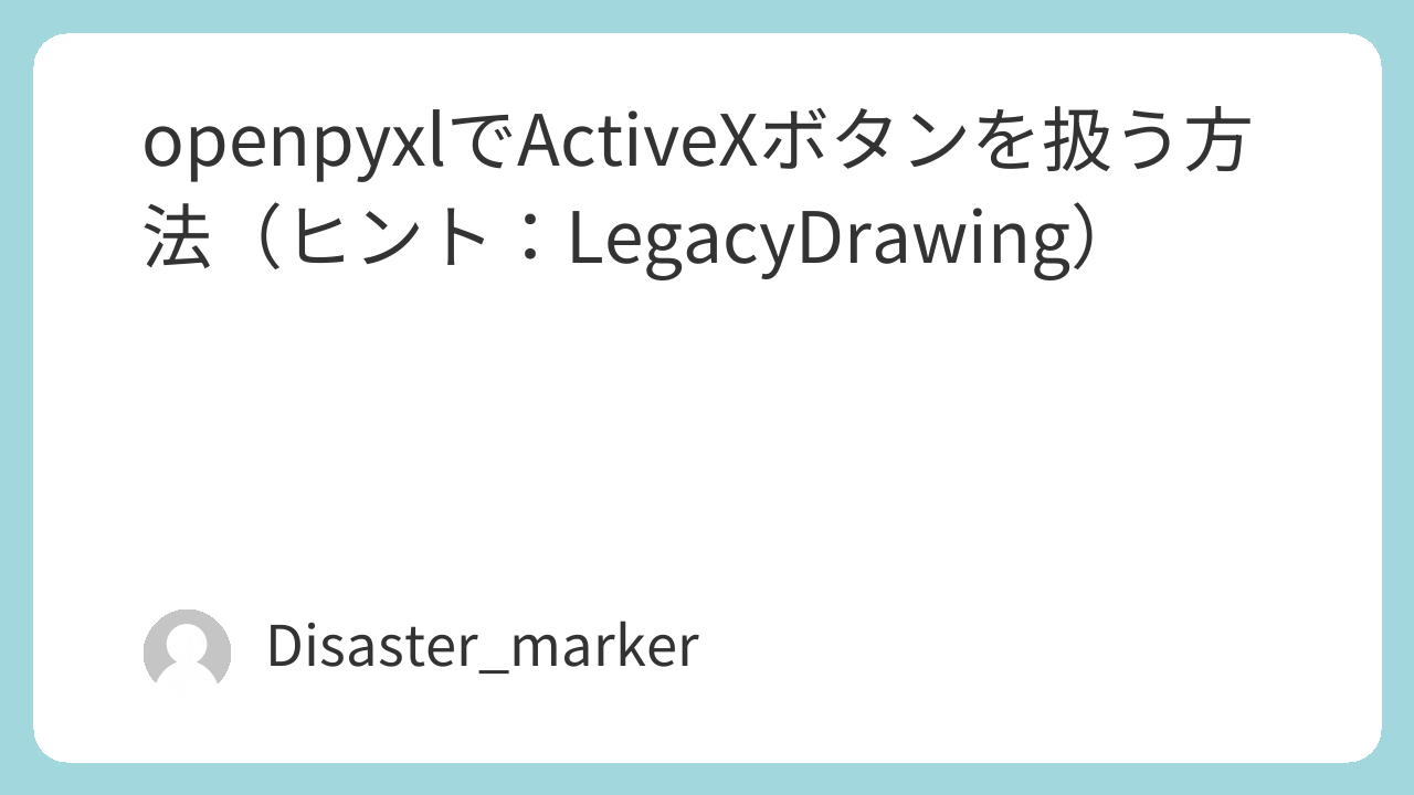 実は、その謎を解く鍵はws.legacy_drawingという、あまり目立たない属性に隠されています。この記事では、このLegacyDrawingを手がかりに、openpyxlがActiveXボタンをどのように認識し、我々がそれをどう扱うべきかという問いに答えていきます。