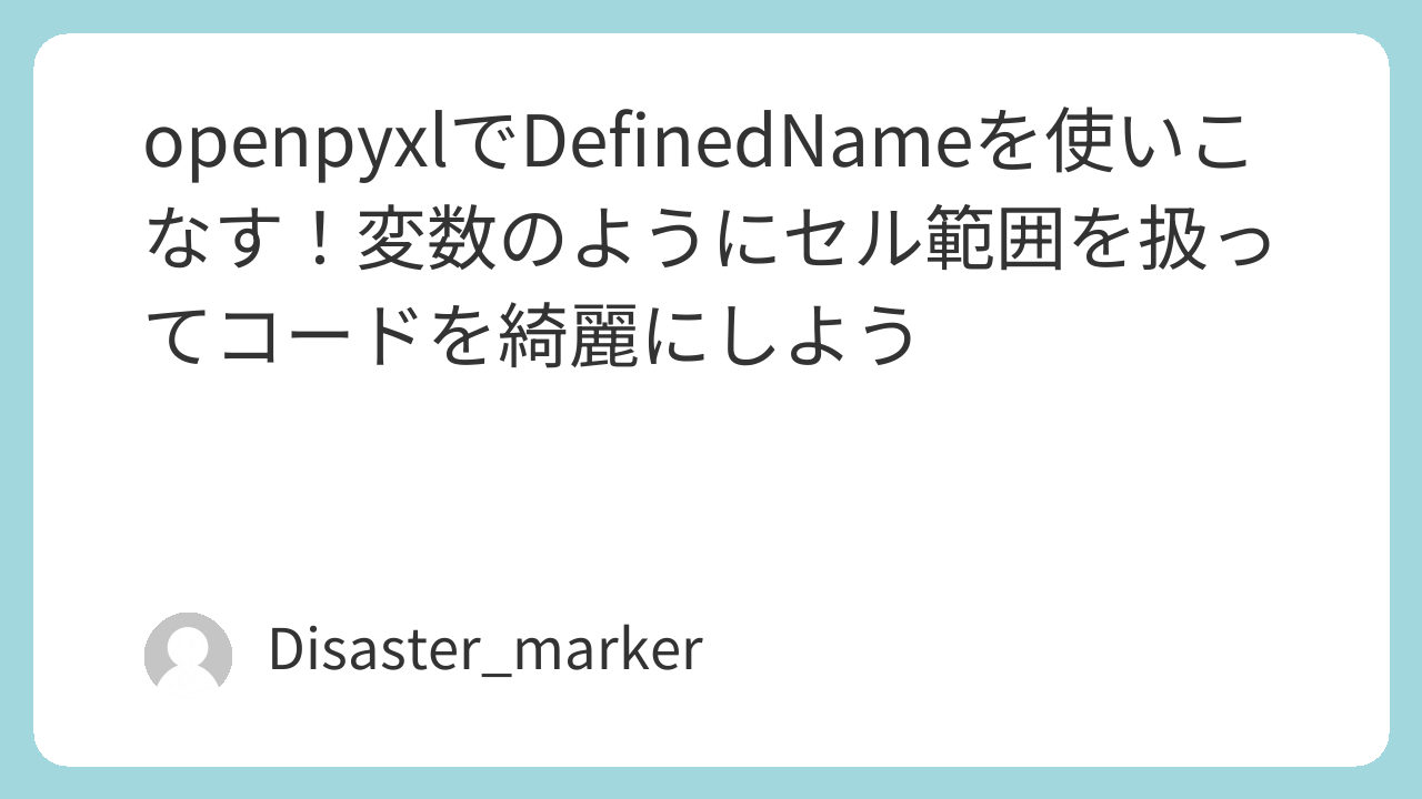 この記事では、openpyxlのDefinedName機能を使って、セル範囲に変数のような分かりやすい名前を付け、メンテナンス性の高いコードを書くための方法を解説します。