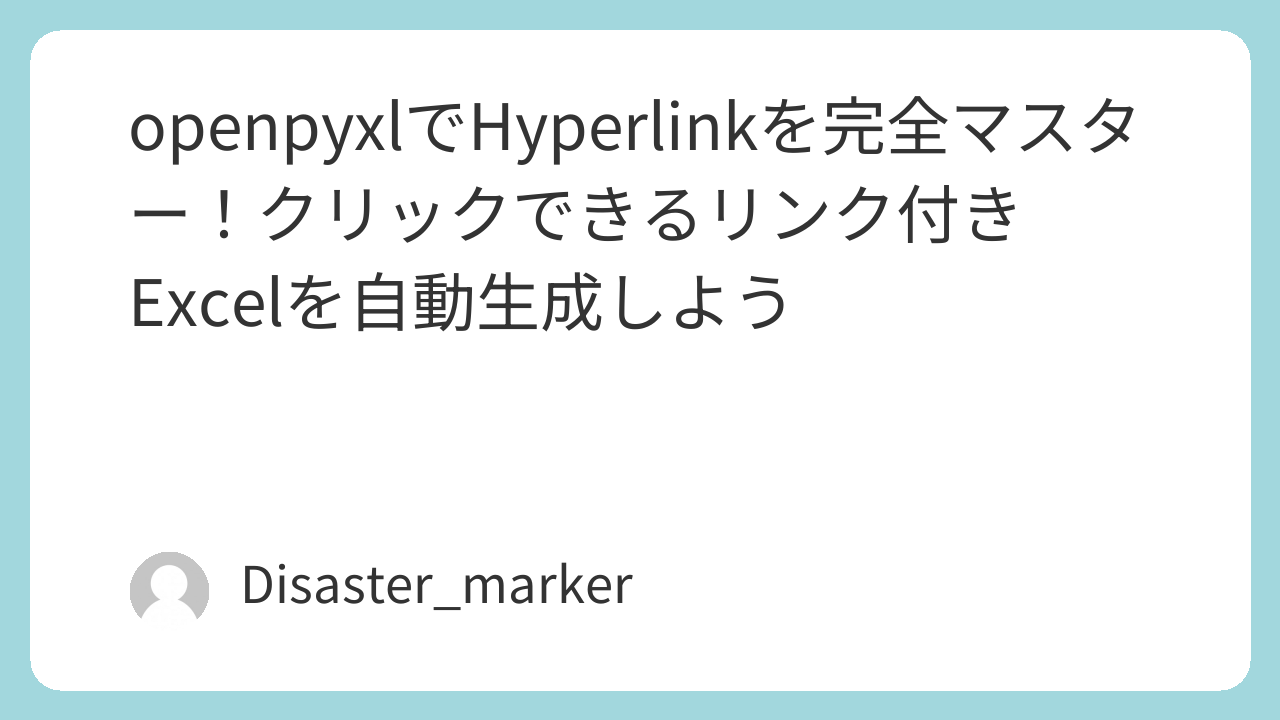 PythonでExcelファイルを自動作成する際、「このセルをクリックしたら関連サイトに飛ぶようにしたい」「目次から各シートにジャンプさせたい」と考えたことはありませんか? openpyxlを使えば、そんなクリック可能なハイパーリンク付きExcelを簡単に自動生成できます。