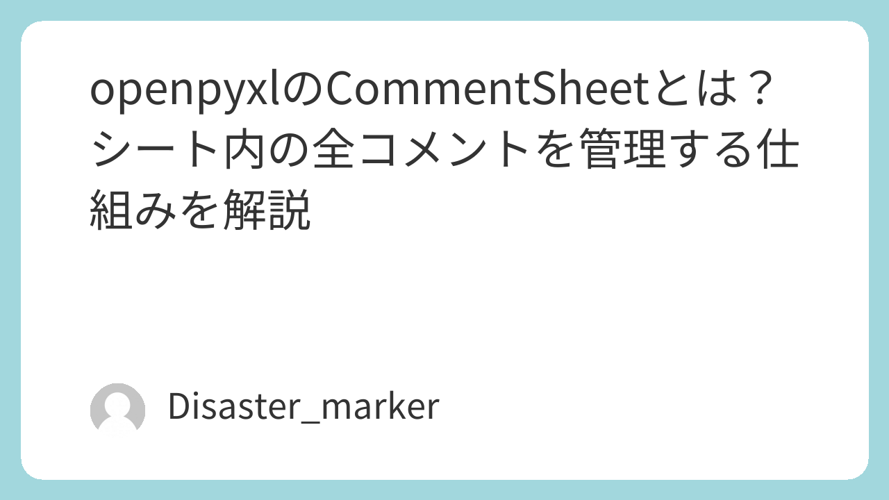 この記事では、openpyxlの少し内部的な仕組みであるCommentSheetに焦点を当て、シート内のコメントがどのように管理されているのかを、初心者の方にも分かりやすく解説します。