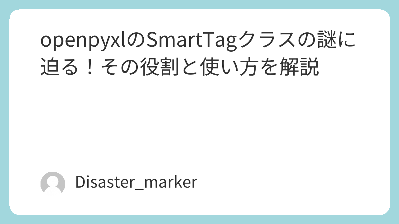 ドキュメントを読んでもあまり詳しくは書かれておらず、Webで検索しても日本語の情報はほとんど見つかりません。 「これは一体、何のための機能なんだ…?」 SmartTagは、多くのopenpyxlユーザーにとって、まさに謎に包まれた存在です。
