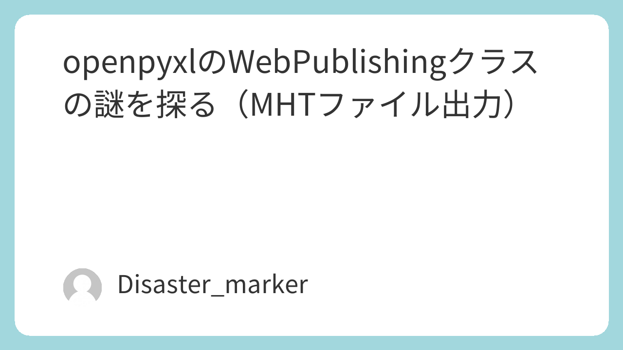 この記事は、openpyxlの知られざる機能WebPublishingと、それに関連するMHTファイル出力の謎を解き明かすための調査レポートです。