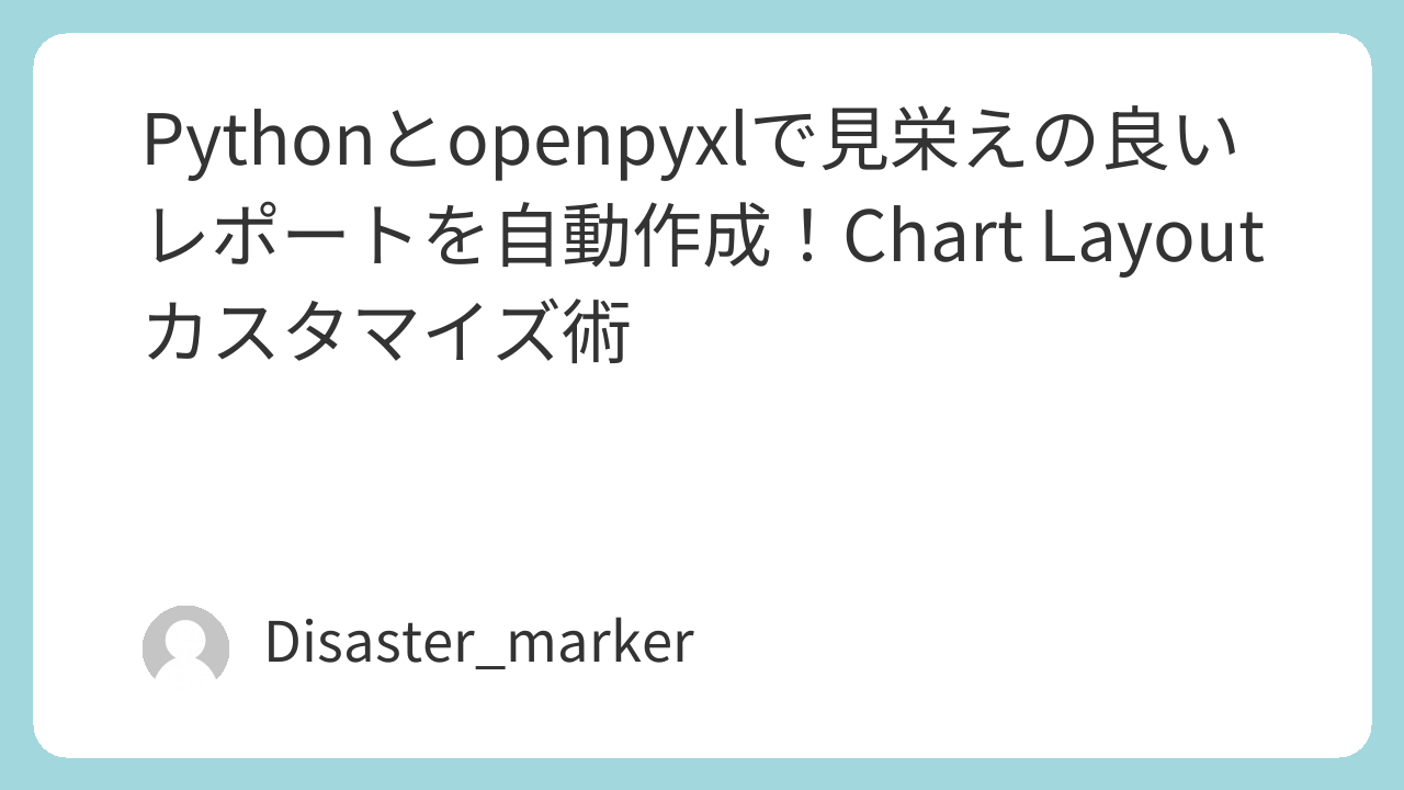openpyxlを使ってExcelのグラフ作成を自動化できるようになったものの、凡例がプロットエリアに重なってしまったり、グラフタイトルが意図しない位置に表示されたりして、結局最後は手作業で修正している…そんな経験はありませんか?