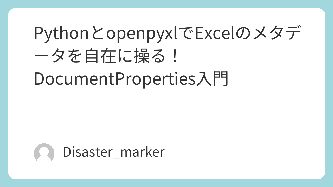 この記事では、Pythonの定番ライブラリopenpyxlを使って、このExcelのメタデータを自在に読み書きする方法を、初心者の方にも分かりやすく解説します。openpyxlのDocumentPropertiesを使いこなして、あなたのExcel自動化をさらにレベルアップさせましょう!