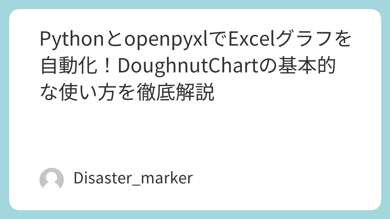 この記事では、Pythonのopenpyxlライブラリを使い、Excelのドーナツチャート(Doughnut Chart)作成を自動化する方法を、基本的な使い方に絞って徹底的に解説します。
