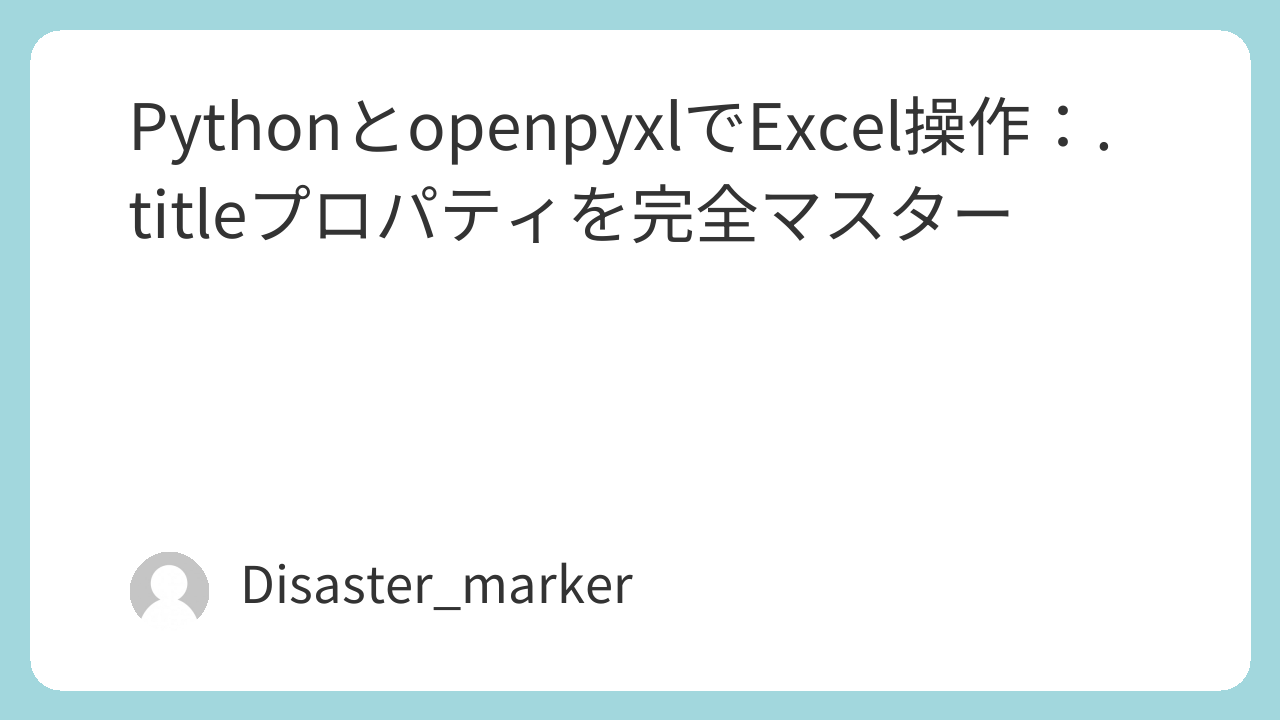 openpyxlで.titleプロパティが登場する主な場面は、**「Worksheet(ワークシート)」と「Chart(グラフ)」**の2つです。どちらのオブジェクトの.titleプロパティを操作しているのかを意識することが、マスターへの第一歩です。