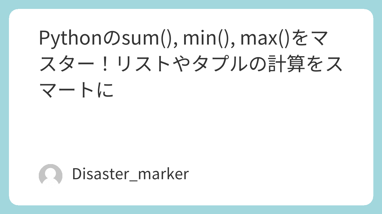 今回は、Pythonの便利な組み込み関数sum(), min(), max()について解説しました。