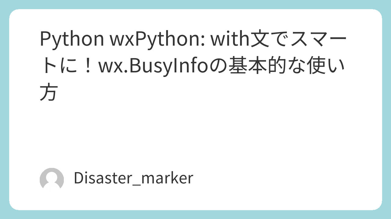 この記事では、wxPython初心者から中級者の方に向けて、wx.BusyInfoの基本的な使い方と、with文を使ったスマートな実装方法を、具体的なコード例を交えて詳しく解説します。