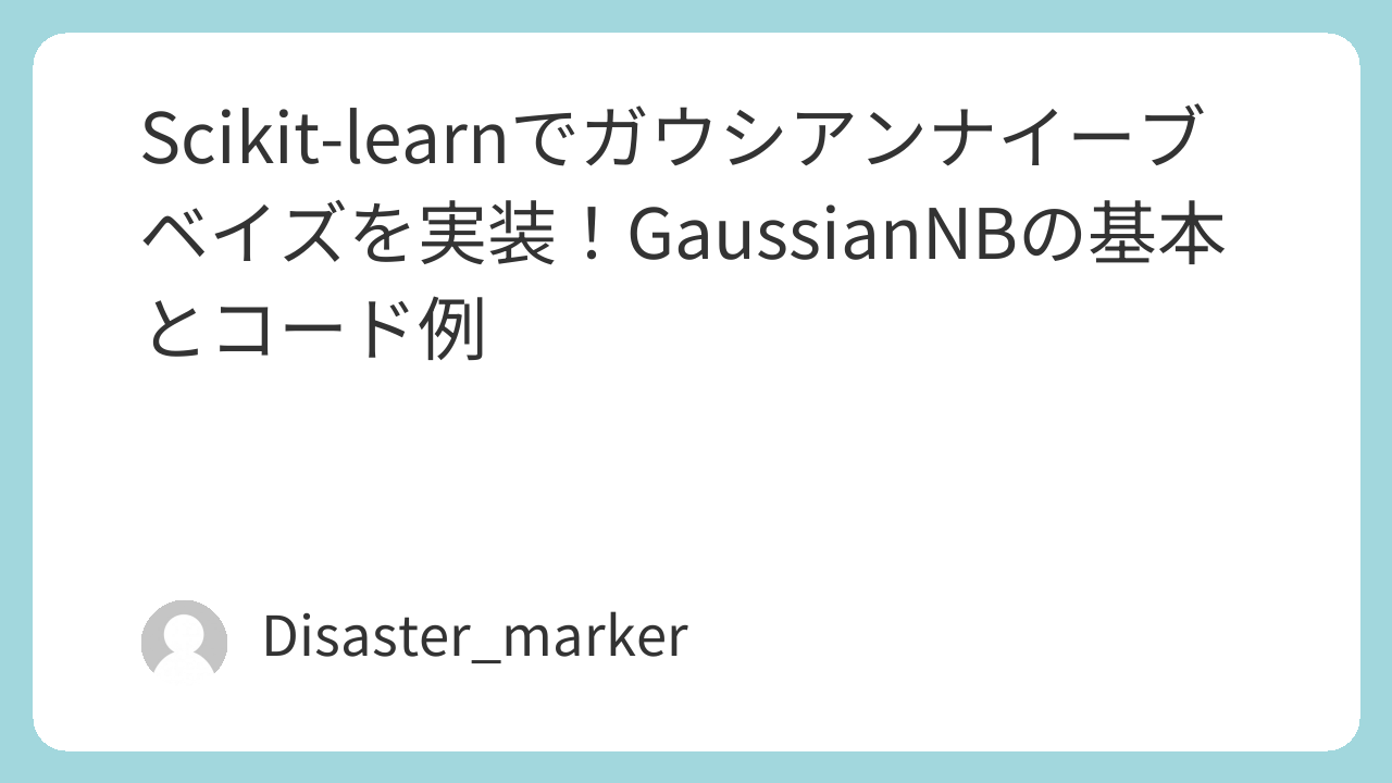 この記事を読み終える頃には、ガウシアンナイーブベイズがどのようなアルゴリズムで、どのように実装できるのかを理解し、ご自身のデータで試せるようになります。