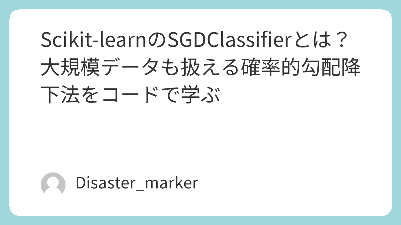 この記事では、SGDClassifierの裏側にある**確率的勾配降下法(SGD)**というアルゴリズムの仕組みから、Pythonコードを使った具体的な使い方まで、初心者にも分かりやすく解説していきます。